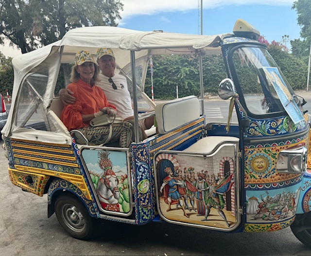 Our travel in Sicily last summer was inspired by our loving the TV series White Lotus, not unlike millions of other viewers. This return visit to cities we hadn’t visited last year –Ortigia, the historical center of Siracusa, Modica, Noto and Linguaglossa near Mt.Etna, was a result of a new love affair with this southernmost Italian island of beautiful Baroque architecture, especially wonderful food highlighted by the freshest fish, shellfish and local produce and wine; a unique sensibility of design, pattern and riotous color that inspire Dolce e Gabbana; and a history that embraces Greek, Roman, Norman, and Arab civilizations. Here is a read and look at some of what we saw and loved in our travel to Sicily. I think you’ll enjoy the eye candy even if a visit there isn’t in your travel plans. And at the end, help if you need an itinerary. Enjoy!