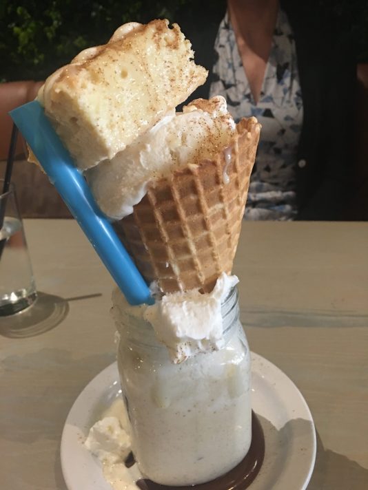 Mega milkshakes is a new trend, and I’m talking about mega. I came upon them in Instagram, at a place called Bocas House in Doral and Weston. They just opened in Coral Gables at 2 Aragon Avenue and went to check them out. A friend and I had one of their signature milkshakes, would you believe, topped with a vanilla ice cream cone and dulce de leche cake. Then there was the glass, surrounded by Nutella. OMG, delicious. They say a milkshake will be on the house if you celebrate your birthday there (must show proof though). Go for it!