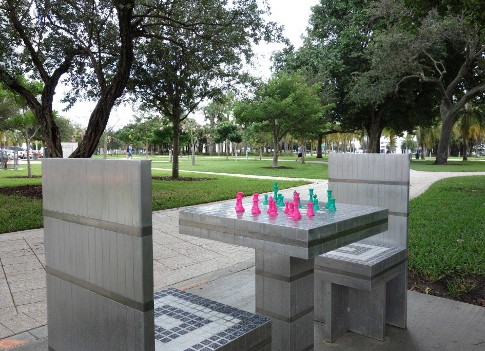 Like your art in a lush garden setting? Head on over to the Miami Beach Botanical Garden to see the exhibit The Undercurrent by Brazilian artist Gustavo Prado which will be enjoyed by families too. The artist uses industrial materials and convex safety mirrors typically used in garages, cars or stores to expand the viewers’ field of vision.This installation is a corridor is formed with angled convex mirrors attached to cinder blocks. You stand in front of the mirrors and each one distorts and changes the image in different ways. The idea is when the viewer’s image is caught in the reflective surface, the sense of self and notion of existence are activated by the work. The exhibit runs until January 17.