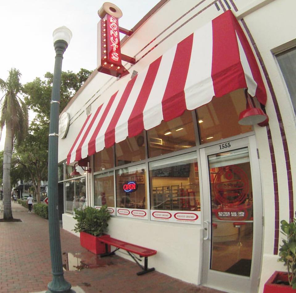 Doughnut aficionados are loyal to their favorite brand and those who love glazed doughnuts are partial to Velvet Crème’s and now Little Havana has a shop that opened in October. It’s been a labor of love for business partners Robert Taylor and Jorge Rios for more than nine years. Wanting to give the place a vintage feel, the interior’s adorned with diner style red stools and matching red top counter and stacks of doughnut boxes ready to be filled. The exterior’s just as welcoming with a red and white striped awning and vintage “Donuts” sign.