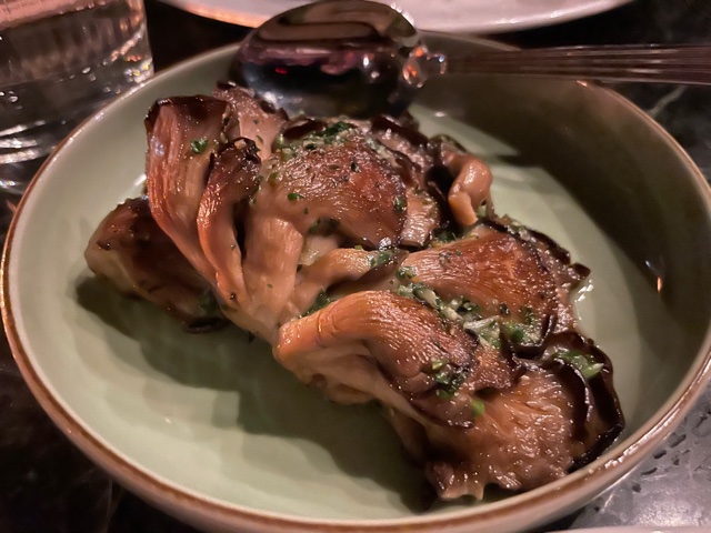 We accompanied it with oyster mushrooms provencal. Also very appealing sounding is another of their specialties, the whole short rib which they lightly smoke, cook sous vide, and grill for 36 hours total and serve with kim-chimi ($30). They call it their “meat candy”. I would also would have liked to try the Milonga – breaded heritage pork chop with charred Napa cabbage slaw and spicy apple butter ($28).