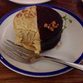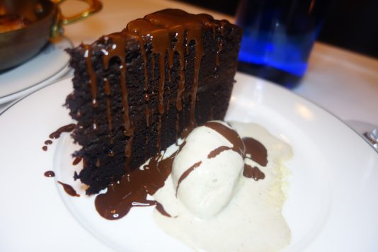 Brutal chocolate cake. It was moist, deeply chocolately, multiple layered, and served with house made vanilla ice cream. The apple tart with ice cream also scored high. Tatel