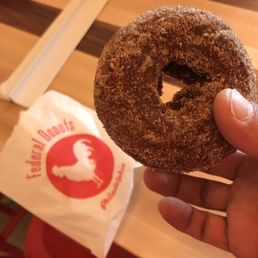 Cinnamon cake donut — dense yet light, coated with cinnamon sugar and served warm. Federal Donuts.