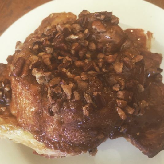 Monkey muffin. It’s actually a sticky bun but instead of being made with a leavened dough, it’s made from croissant dough (from the leftover pieces of the dough for their croissants). OMG is it ever delicious. It is denser than the usual bun, and has the perfect amount of “goo” both on the top and sides, and sometimes has a “tail” of the “goo” that’s like eating candy. And of course there are the requisite nuts for crunchy goodness on top. Grand Central Bakery, Portland, Oregon and Seattle