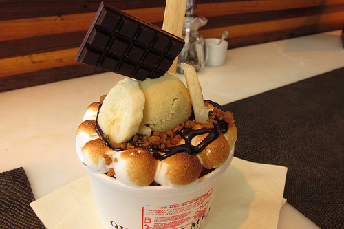 A delicious riff on Smores – burnt marshmallow, ice cream with chocolate fudge, chocolate chunks and graham cracker bits. Quality Meats.