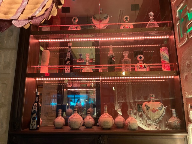 Other dishes on the dinner menu, these for carnivores, include Alambre al Pastor: scallops or pork tenderloin grilled on skewers with pineapple and spring onions, a variation on Mexico City’s beloved al pastor tacos; a rotating selection of traditional Oaxacan-style mole sauces; and meat dishes, including Chuletón (ribeye steak), Filete (filet mignon), and adobo marinated rack of lamb ($72) which I’d like to try next time, all of them flame-grilled in the fuego and served with a variety of house-made sauces and condiments.