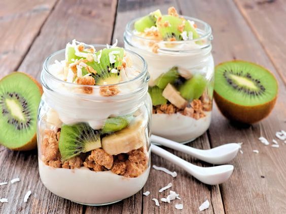 The usual fruit combo with yogurt is berries which these days are very affordable with frequent specials at Publix and Winn Dixie.  But how about adding kiwi or green apples that make it bittersweet? And instead of a bowl, put it into a Mason jar in layers. Fancy.