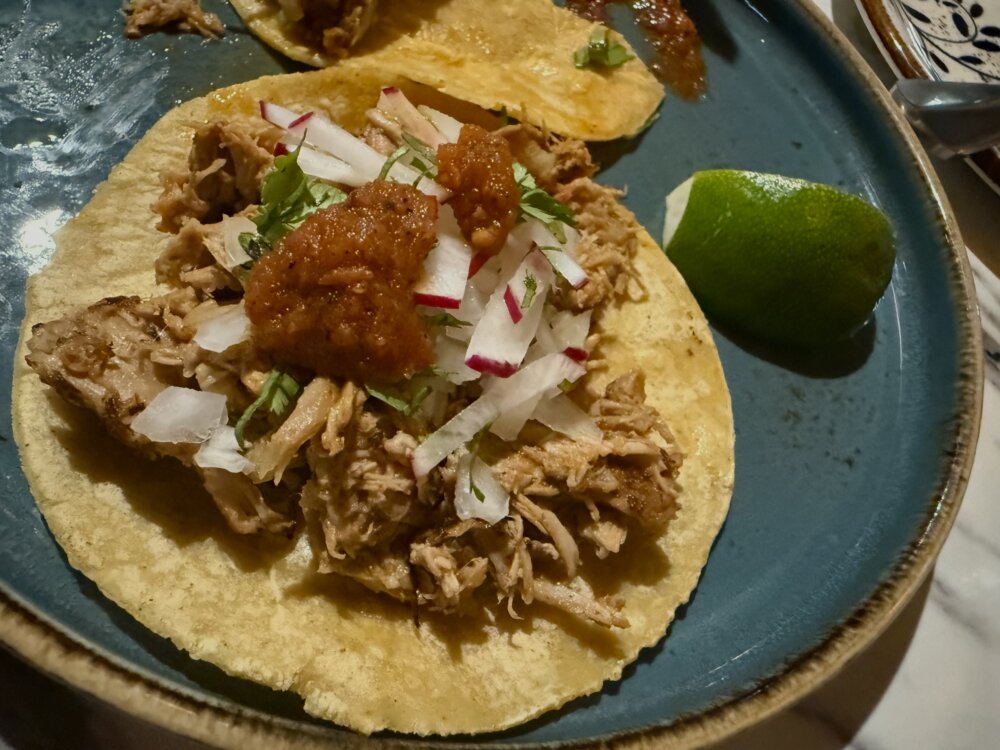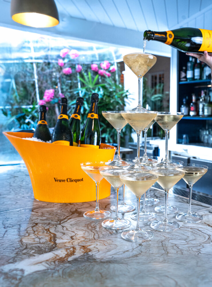 No wonder One K in the Brickell area is packed at Happy Hour every Monday through Friday. We’re talking a glass of Veuve Cliquot for $5 , crowd pleasing light bites for $6.50 to $10, friendly service and a casual and appealing terrace. Called “Veuve on the Clock”, this new sparkling happy hour happens from 4-7 p.m. The concept is this, the earlier you come, the cheaper the champagne. Come 4-5 it’s $5; 5-6 it’s $10 and 6-7 it’s $15. Prefer another drink? Get 50% off the entire bar – cocktails, wine, and beer. Then there’s 50% off the appetizer menu which includes items like a 1K smash burger, oysters, beef tacos, tuna tar-tacos, tuna crispy rice and more. We enjoyed the tuna tar-tacos and beef tacos, our favorite was the fried chicken bao buns (2 to an order), They are breaded chicken tenders, pink peppercorn ranch, buffalo aioli and celery. Want something more substantial? There’s a selection of bowls and pasta for $17.50. Besides the outdoor terrace there’s indoor seating.