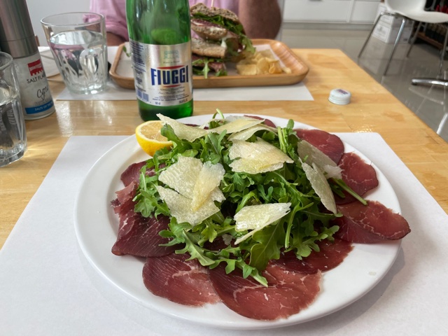 One of the best if not the best Italian cafes in Miami has to be Prima Classe in South Beach. The quality of the products is first rate, the staff is friendly, and the whole thing about it is pleasant. Plus, it has a gourmet food and wine market with packaged products along with a selection of proscuitto (my picky Italian friend said it’s the best she has had in Miami), salami and cheeses. They serve breakfast, lunch and dinner, a menu that includes salads, panini, pastas and dolci (sweets). We enjoyed a crusty multi-grain panino with salami, stracchino cheese and arugula that was served warm and a bresaola, arugula and parmigiana salad.Both were delicious, topped off with a machiatto that transported me to Italy. There are several tables indoors and several umbrella topped tables outdoors. 842 1st Street.