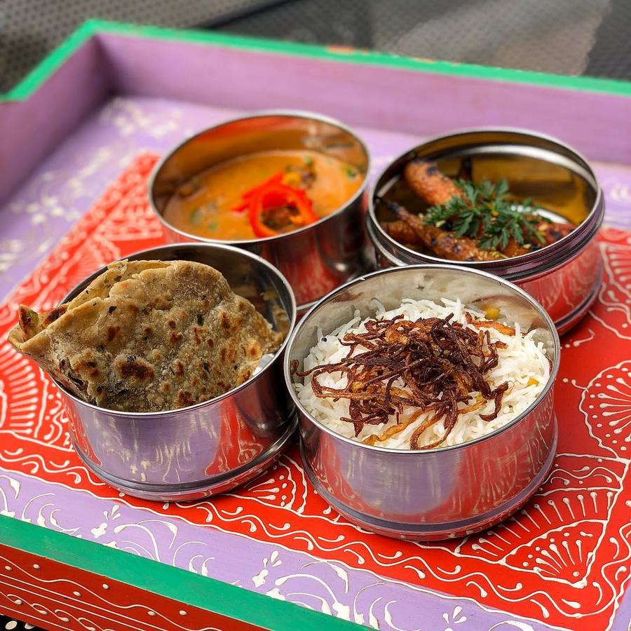New Indian dinner hot spot Ghee, offering Gujarat inspired cuisine, is now open for lunch in the Design District. The menu is limited now – a choice of one menu with a choice of entree (vegetarian or other), three dishes in all, and a specialty bread. It is served in a typical Indian Tiffin steel lunch pail with four sections that come apart and serve as serving “plates”. We had sauteed cauliflower with cumin and mustard seed, curried chicken, and brown rice and quinoa with puri bread. Portions were on the small side, but everything was tasty. Lunch is $16 with a non vegetarian entree and $18 for vegetarian. Wine, beer and soft drinks are available. Ghee, 3620 N.E. 2nd Avenue, T. 786-636-6122 is closed Sunday and Monday. No reservations, but the day we went it was easy to find a table. In the evenings you need to make reservations a week in advance. The original Ghee is in Dadeland Downtown.