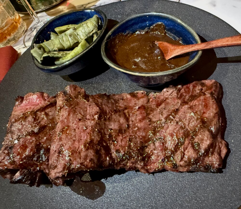 We topped off the meal at Casa MX with a large plate, the carne asada, a very tender and delicious outside skirt steak, perfectly cooked and served with mole sauce, grilled nopales and rice.Next time I’d like to try the scallop tostadas with salsa cruda and cucumber, the whole fish with guajillo adobo and salsa verde, the shrimp with black garlic, and the Mexican shawarma chicken kebab with bean hummus, cabbage and Mexican tzatziki.