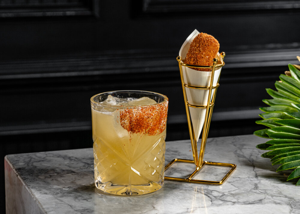 One of the best cocktails I’ve had these days (and my friend, a woman about town agreed) is the Green Acre which we recently enjoyed at the Cocktails & Croquettes offering at The Commodore of the Ritz -Carlton Coconut Grove. In case you missed my earlier mention of it, the idea is they offer three different cocktails, each teamed with a special croquette from Miami’s Dos Croquetas. The Green Acre came with a Mexican Street corn croquette made with char grilled seasoned corn and cotija cheese in crispy panko breadcrumbs. The drink and croquette is $24 or you can order 5 mini croquettes for $16. The bar, with its deep upholstered leather sofas, fireplace and antique furnishings, is made for comfortably lounging and conversation. The promotion runs through November.