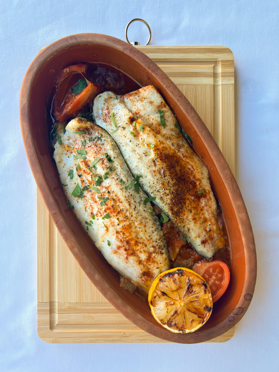 A signature dish and another favorite is the clay lamb, slowly cooked lamb and vegetables in a fresh tomato, garlic and onion sauce cooked in a clay pot. The entire dish is then covered with homemade brioche dough and served with jasmine rice ($32). If you’re a fish lover, do not miss the oven baked branzino which is one of the better preparations I’ve had, plus the fish was super fresh. A branzino filet is clay baked and served over baked vegetables with the fresh tomato garlic and onion sauce ($35).
